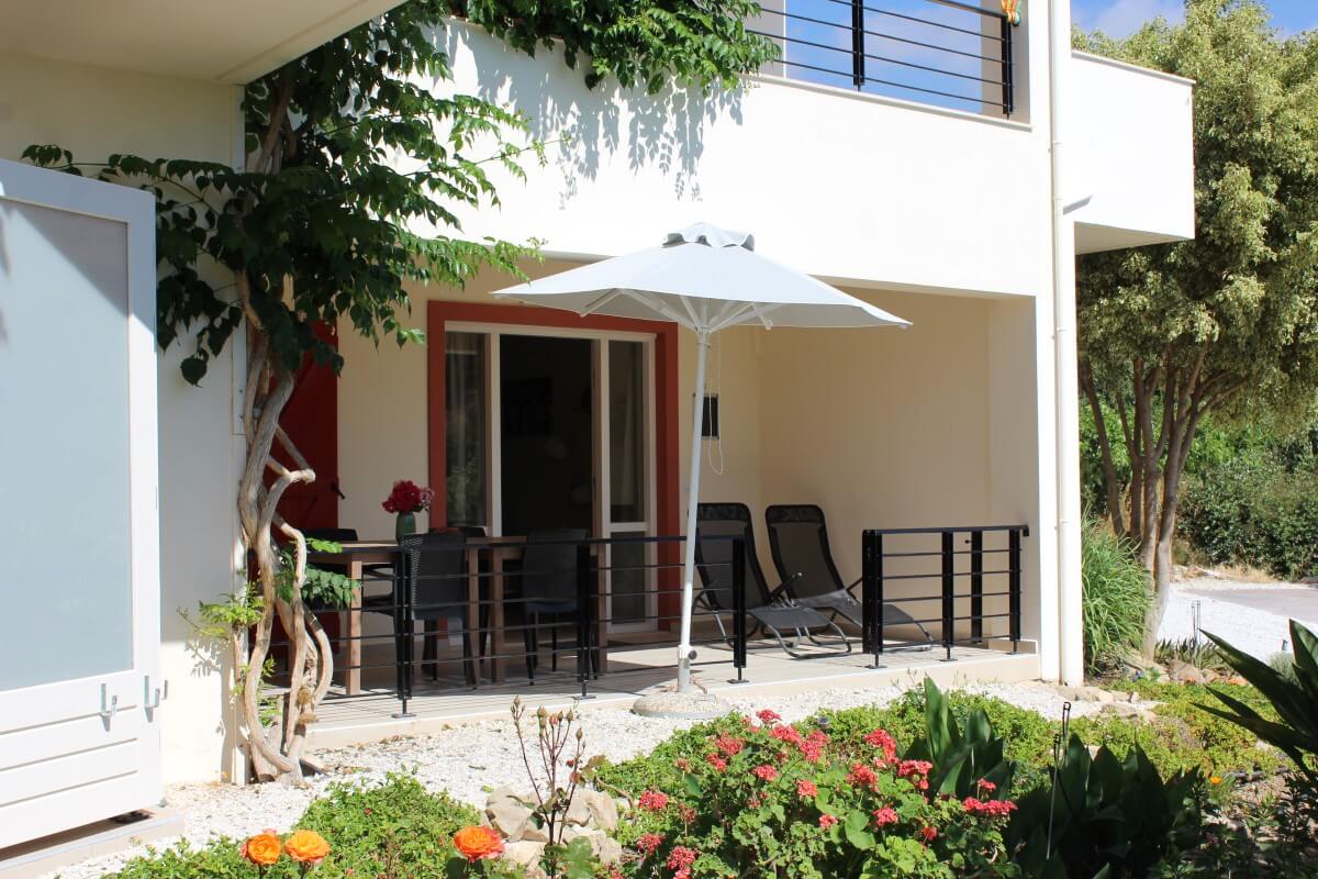 • a terrace with garden view